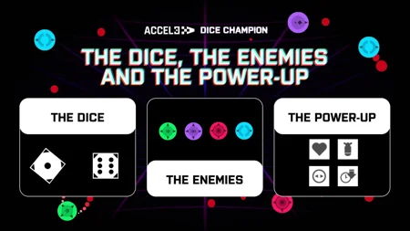 Jump - Smash - Earn. Every time you land, your die rolls and determines how far you'll jump on your next move - from small hops to massive leaps depending on which faces of dice rolled out. Plan your moves strategically to stay alive and defeat enemies, while gaining momentum and earning massive rewards as the ultimate Dice Champion.